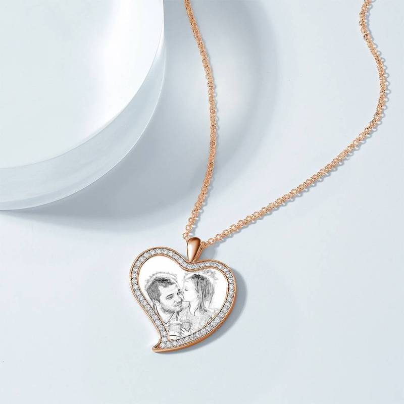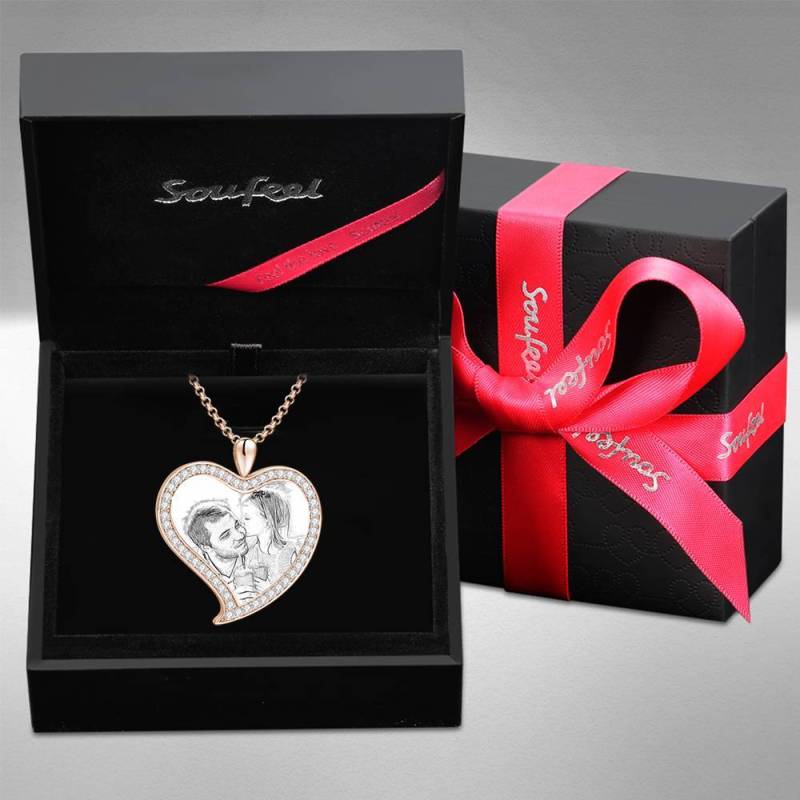 Custom Soufeel Tag de acero inoxidable foto colgante es la manera perfecta para mantener sus mayores recuerdos cerca del alma. Este collar de fotos personalizado está hecho de acero inoxidable resistente, que nunca va a manchar, entonces usted puede sostenerlo por muchos a?os. ?El regalo pensativo, divertido y original perfecto para cualquier ocasión! Soufeel tiene una tonelada de opciones de joyería personalizada que son precios razonables y hacen para grandes regalos para todo tipo de ocasiones como cumplea?os, días de fiesta, Día de los padres. Mujer Collar grabable con Foto Personalizada, Collar con Foto de Forma de Corazón de Amor con Cristal de Strass Ba?ado a Oro Rosa - Bosquejo.