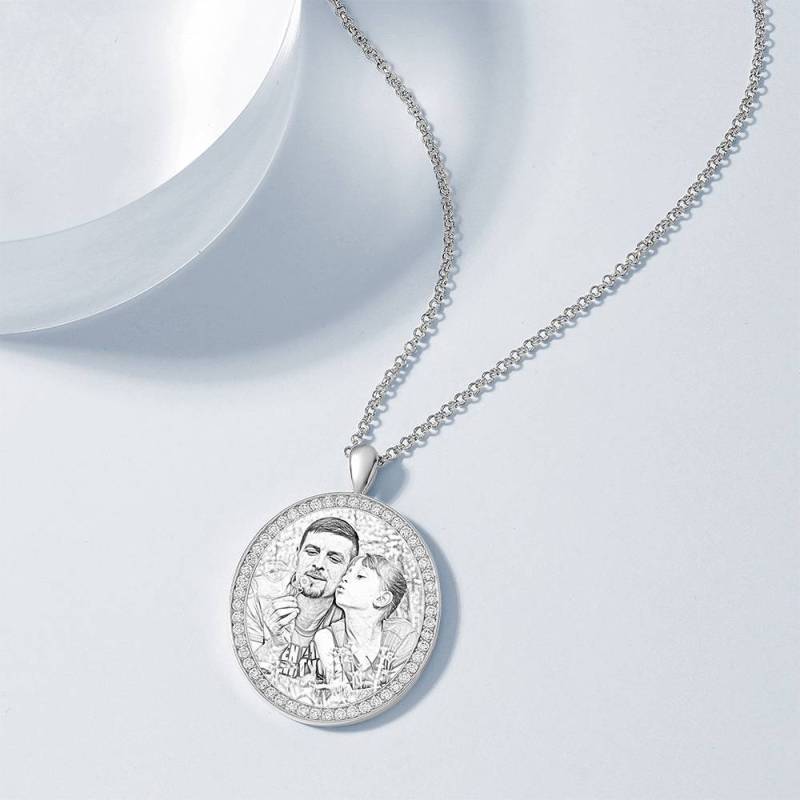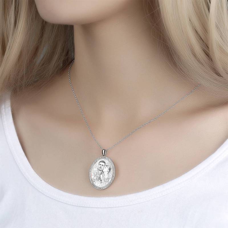 Custom Soufeel Tag de acero inoxidable foto colgante es la manera perfecta para mantener sus mayores recuerdos cerca del alma. Este collar de fotos personalizado está hecho de acero inoxidable resistente, que nunca va a manchar, entonces usted puede sostenerlo por muchos a?os. ?El regalo pensativo, divertido y original perfecto para cualquier ocasión! Soufeel tiene una tonelada de opciones de joyería personalizada que son precios razonables y hacen para grandes regalos para todo tipo de ocasiones como cumplea?os, días de fiesta, Día de los padres. Collar de la mujer grabable con foto personalizada, Collar con la foto de la forma oval de plata con Cristal Strass de platino plateado - bosquejo.