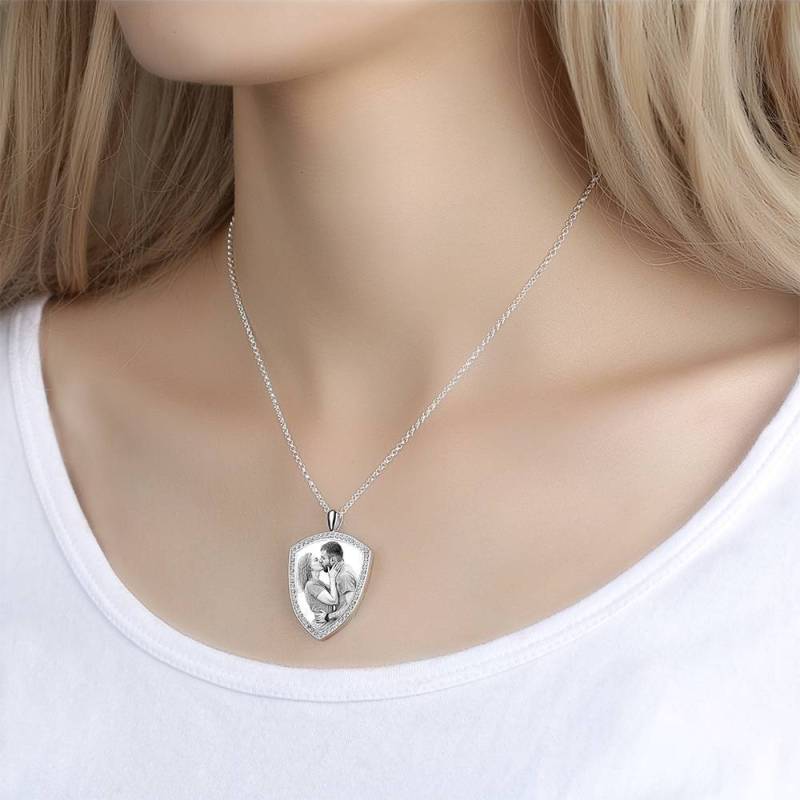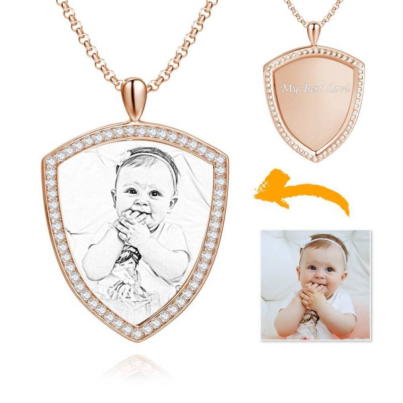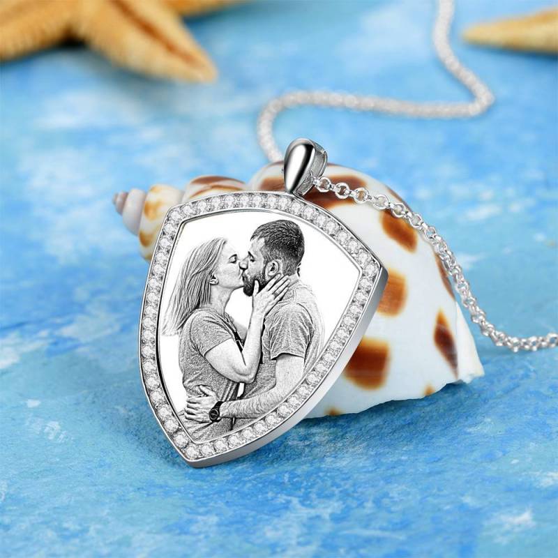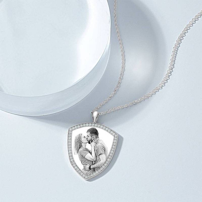 Custom Soufeel Tag de acero inoxidable foto colgante es la manera perfecta para mantener sus mayores recuerdos cerca del alma. Este collar de fotos personalizado está hecho de acero inoxidable resistente, que nunca va a manchar, entonces usted puede sostenerlo por muchos a?os. ?El regalo pensativo, divertido y original perfecto para cualquier ocasión! Soufeel tiene una tonelada de opciones de joyería personalizada que son precios razonables y hacen para grandes regalos para todo tipo de ocasiones como cumplea?os, días de fiesta, Día de los padres. Mujer Collar grabable con Foto Personalizada, Collar con Foto de Forma Escuda con Cristal de Strass Plata Banada a Platino - Bosquejo.