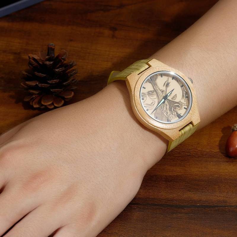 Femenino Bambú Reloj Grabable de Foto Correa de Cuero de Color Madera 40mm