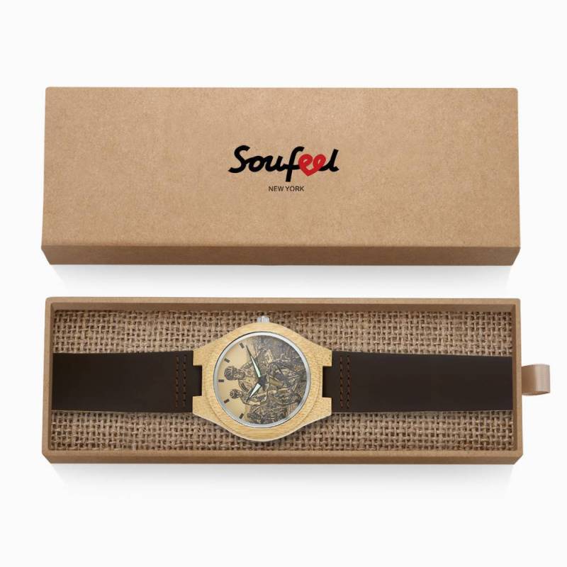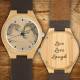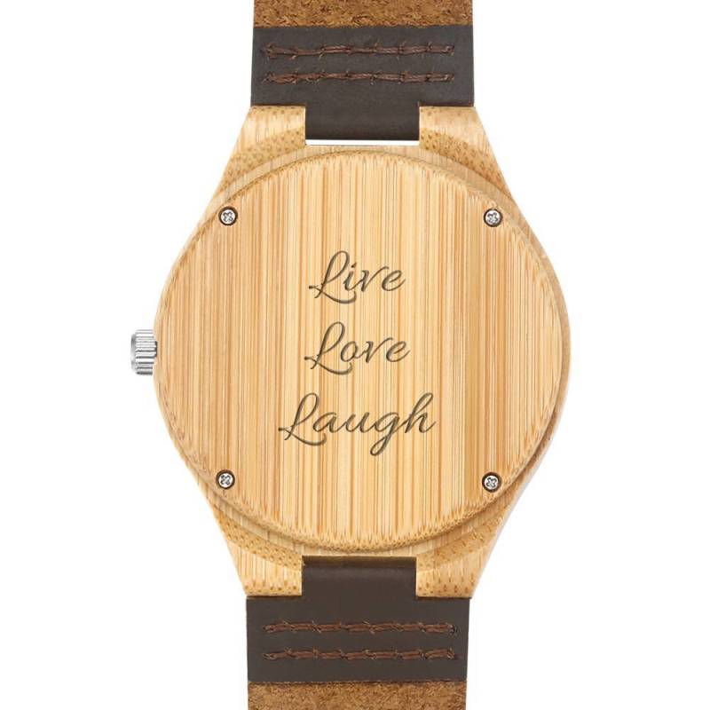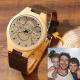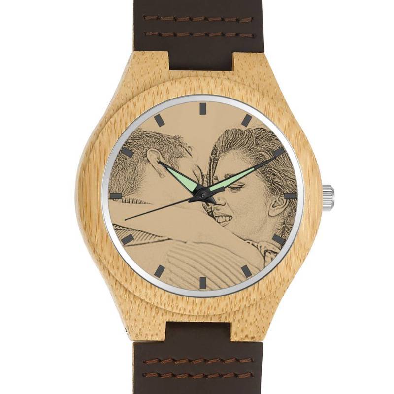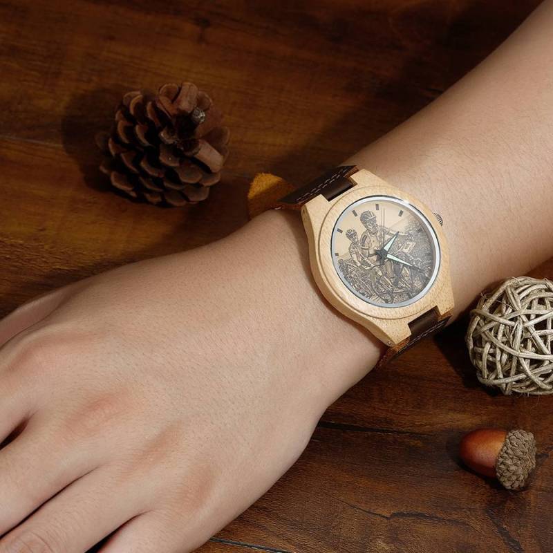 Femenino Grabable Bambú Reloj de Foto Correa de Cuero Marrón 40mm