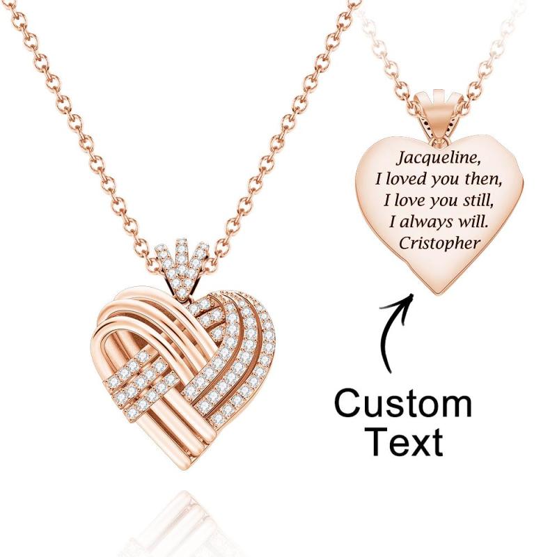 ¡Un precioso colgante de corazón con el sentimiento perfecto! Elegante diseño entrelazado, símbolo de su vínculo inquebrantable. Puede personalizar el nombre o el texto de su amante en este colgante personalizado para que este producto sea único. Regálaselo a alguien que esté celebrando un cumpleaños, una graduación, un baby shower o un aniversario.