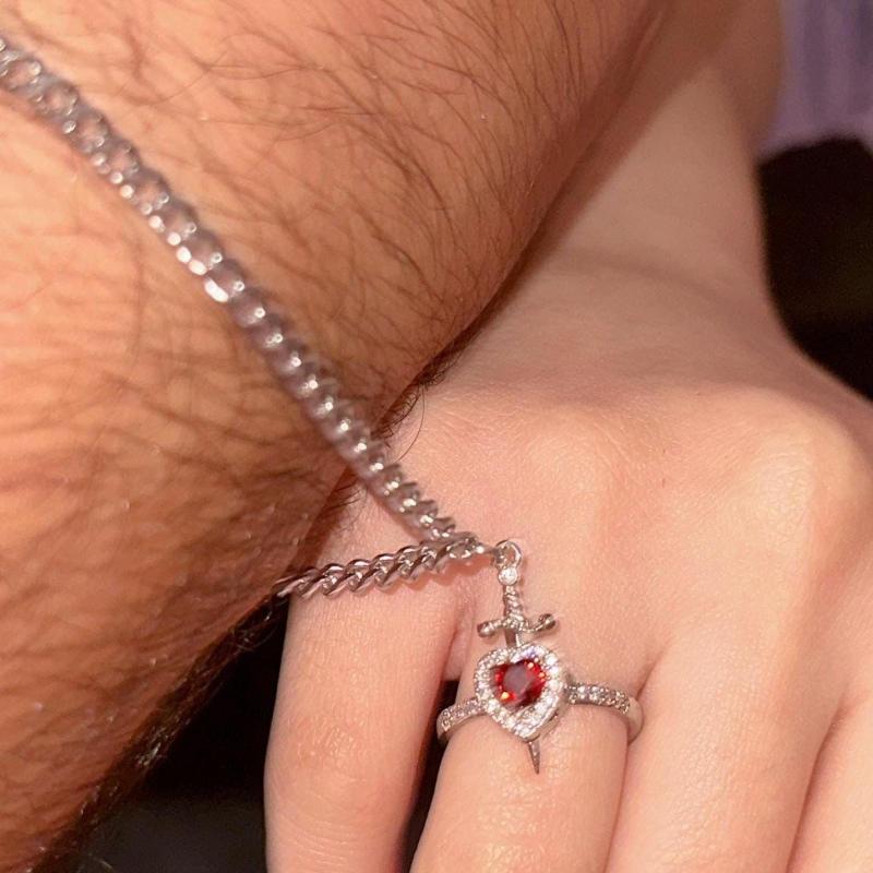 Celebre su vínculo único con nuestro juego de anillo y pulsera 'Estás en mi corazón', bellamente diseñado para expresar amor y conexión. Este encantador conjunto incluye un delicado anillo en forma de corazón con un llamativo motivo de espada que simboliza la fuerza y la protección, lo que lo convierte en un regalo perfecto para alguien especial o un regalo especial para ti.